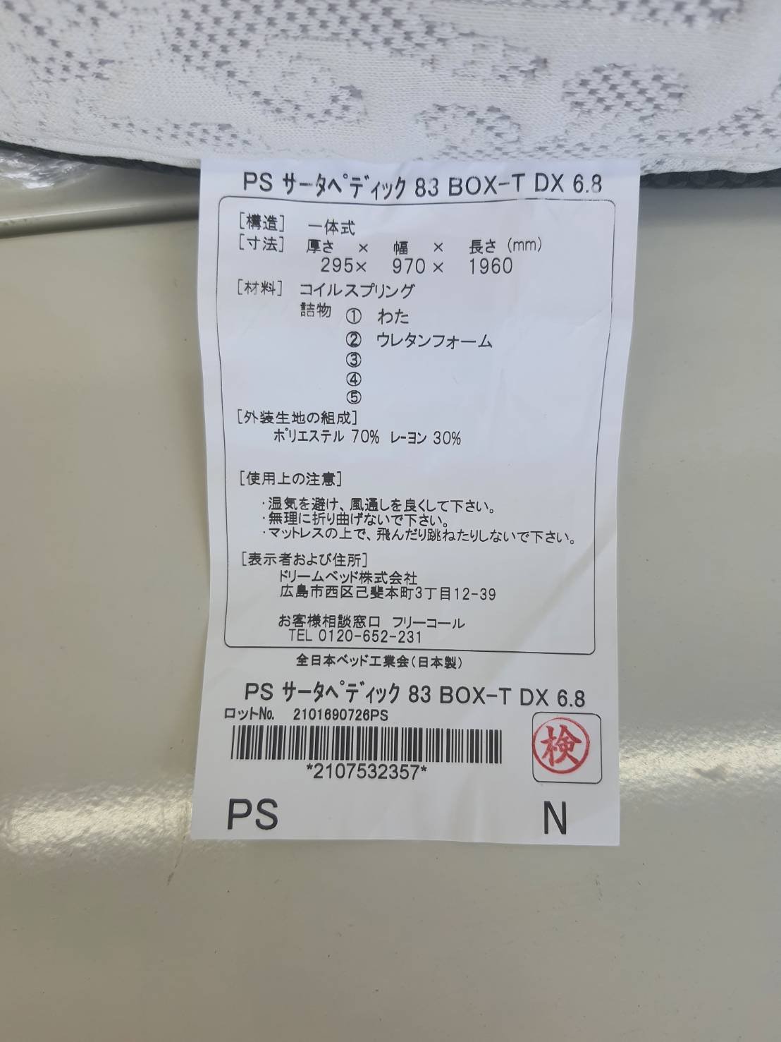 世界有数のベットメーカー、「serta/サータ」のシングルマットレス1台となります。